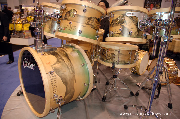 Beautiful Chinese watercolor painting motif on these Cadeson drums.
