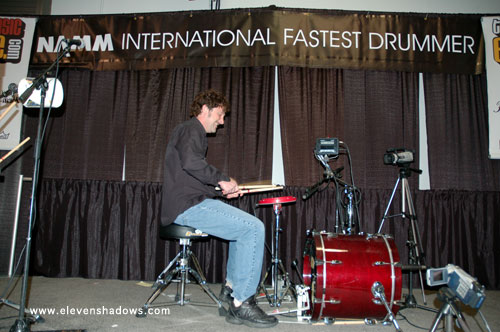 Lorenzo competing in the NAMM International Fastest Drummer Contest.