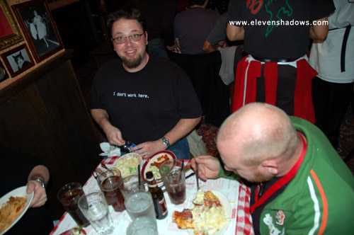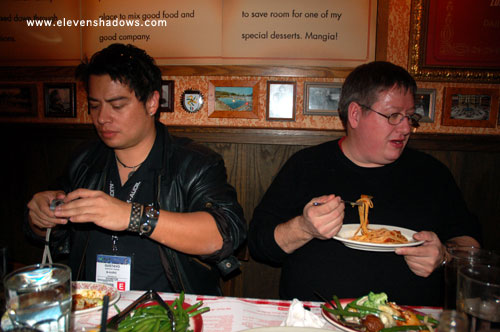 GearMike and the top of Phil O'Keefe's head, NAMM dinner.