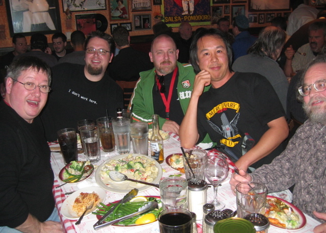 Gus, Dave the Rave, GearMike, Phil O'Keefe, me, Mike Rivers at the NAMM dinner.