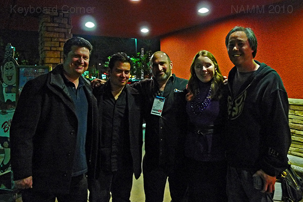 Gus, Dave, Sherri, and I.On the NAMM floor, I also ran into Steve (Extreme Mixing on Craig Anderton's SSS forum on Harmony Central) and EveAnna Manley of Manley Labs, who had an eventful year, getting married, buying a house, and breaking her foot. Other cool stuff that I didn't have photos for include the Waves Vocal Rider, the Yamaha CP1 piano, the Reunion Blues Continental guitar case (their video of someone heaving a guitar off a three-story roof onto concrete repeatedly with the guitar not even being scratched was fascinating), and some other stuff was cool too. Lots of cool gizmos. But I go to NAMM largely to hang out with my friends...and it's not so much to get a hoarse voice, breathe pukey air, get sore feet, and feel like I survived something. Lastly, I want to thank Dave Bryce for everything, including organizing the dinner. |