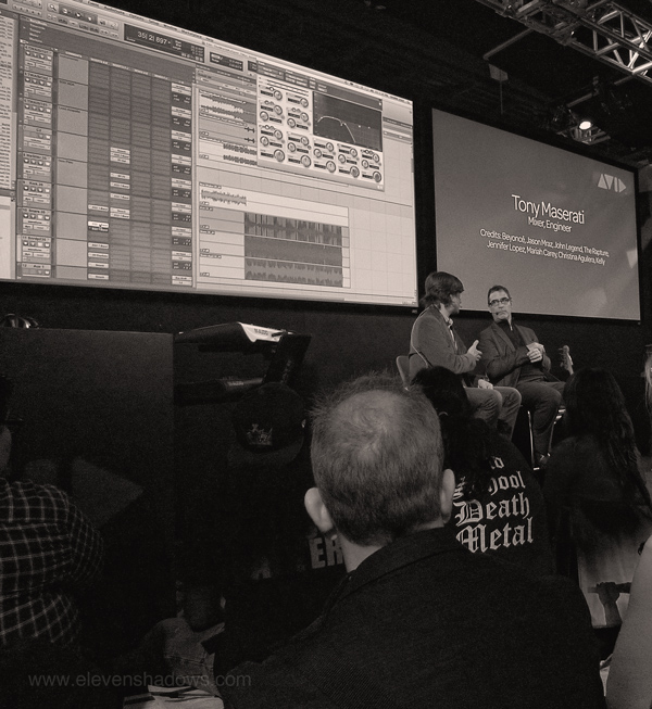 For whatever reason, we stayed for several of Avid's Pro Tools presentations, including this one with Tony Maserati, in which he mentioned his method of multi-band compression, involving duplicating a track, using filters to split the EQs, and then compressing each track differently. Useful and practical. Two of the presentations also described some of Pro Tools 10's new features, including disk caching to create more responsiveness in playback and recording by storing the session in RAM, AAX plugins, 32-bit floating point file formats, clip-based gain, and more. I don't know how much longer we will need to wait for track freezing, but one can always hope. Pro Tools seems to have a certain energy about them now. They seem determined to catch up and create something cool to use, and they're largely succeeding. I also discovered that it can take as many as 150 tracks to create really generic music. But it'd be in perfect time, no doubt. The next day, we sat in on Dave Pensado's presentation, which was regrettably not interesting or worthwhile at all. ~~~ Shouldn't a group called The Mercury Seven have some recording equipment called "Apollo"? Dammit, still thinking about the UAD thing. |