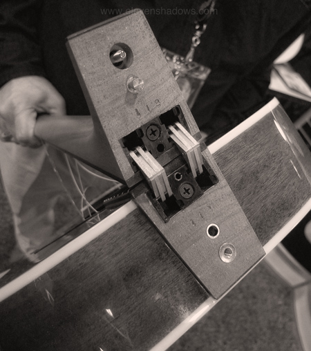 Yes. This. I've heard nothing but good things about UAD processing, and this Apollo looks promising. Do I need it? No, not really. But look...8 analog I/O, all the digital I/O I'd ever need, 4 mic preamps, firewire, Thunderbolt ready, those amazing UAD plugins that never require updating. And wow, it'd offload some of the processing from the CPU! And did I mention the UAD plugins that never require updating? I could get the UAD Manley Massive Passive. Sure, it can probably process only a few at a time, but hey...Neve, Studer, Manley, Lexicon, Ampex, SSL...comes with LA-2A and 1176 compressors and Pultec EQP-1A. This device can use the UAD plugin processing for tracking or mixing with a variety of DAWs, including Pro Tools, Logic Pro, Cubase, Live, and more. So it's US$2500 list price for the quad version, with the Thunderbolt I/O option card costing extra, probably US$500, but this is a guess, and it should ship April 2012, if I recall correctly. I've got an Apogee Rosetta 800 and a Presonus Firestudio, which I basically use just as the "thalamus" of my Blueberry Buddha Recording Studio's DAW setup. So like I say, I don't really need the Apollo. But it sure looks great....maybe if I sell the.... ~~~~~ NAMMbulating is me walking around NAMM. It is not meant to be comprehensive. This is simply me having fun, meeting friends, looking at gadgets, and learning a few things. Oh, yeah, the other thing I saw that looked cool included the Electro-Harmonix Ravish Sitar. It's amazing, and not just for sitar/drone sounds. The sound generators are apparently related to the HOG pedal. Really super creative and fun. I tried to buy one but they didn't have NAMM specials. |