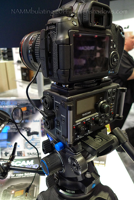 This is the Tascam DR 60D, an on-camera recorder, showing the dominance of DSLRs being used as video cameras. |