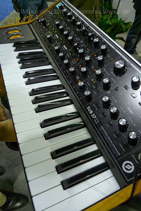 This was probably the highlight of NAMM as far as gear goes. This is the Moog Sub 37 Tribute, the next generation Sub Phatty, and just a gorgeous, fat, complex, cool, fun to play analog synth, creating that amazing sound that only an analog synth can make. US$1400. Want. |