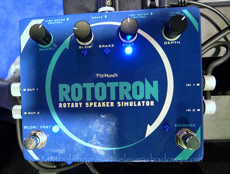 I got back to the hotel after midnight, the second time I've stayed at a hotel instead of driving back. The next morning, I wandered over to Pigtronix and checked out the Rototron, a rotary speaker simulator, which sounds phenomenal, and can get more "traditional" sounds all the way to really ethereal sorts of sounds. Very creative. Pigtronix creates fantastic, innovative, great sounding pedals, and for me, it's always a MUST to check 'em out. They're also super nice. |