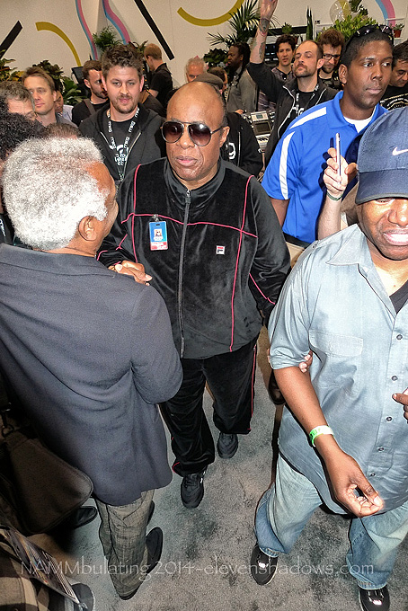 Met up with Mitch, and just after, saw Stevie Wonder at the Moog booth. |