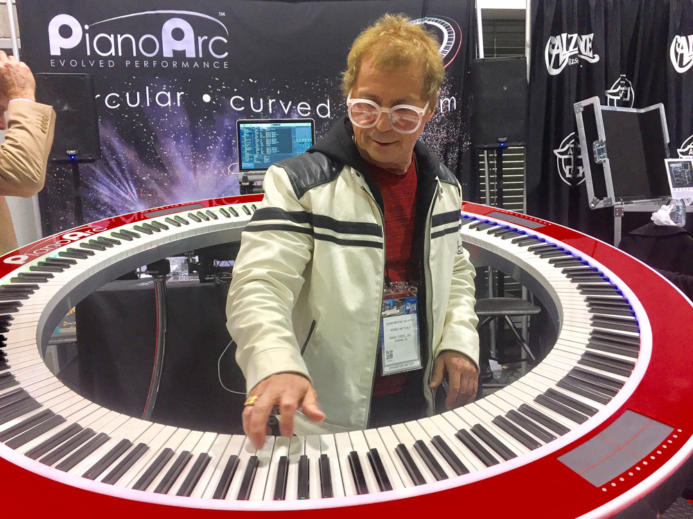 Rocket Man, apparently an Elton John impersonator, checking out PianoArc for his first time. I was there to catch the moment in all its loopy glory. |
