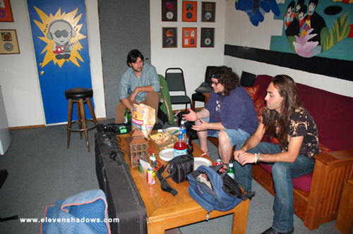 in the recording studio lounge Foxtick, Songrytr, and Phil's daughter's