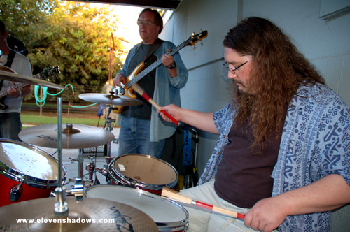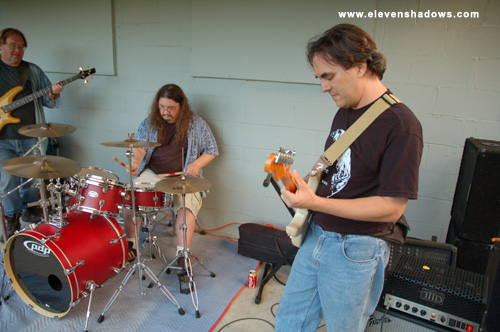 Toxic Potatoe and Stompboxman study the band's improvisations intently. |