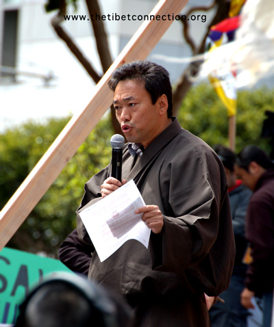 Tenzin Chodon, the North American representative of the Tibetan government-in-exile, addressed the crowd, imploring the IOC not to run the Olympic torch relay through Tibet, which was still in military lockdown, with Kirti and other monasteries reporting hundreds of monks being taken away in the night, and no international media allowed in to Tibet. The idea of running a lit torch representing the lofty ideals of the world coming together in the glory of Olympic spirit through Tibet seemed to ridiculous to even consider. |