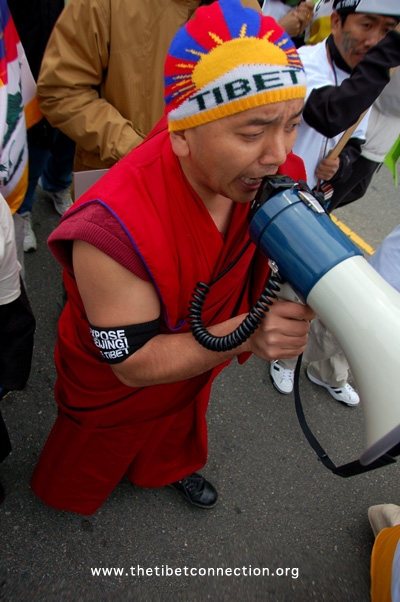 peaceful demonstration there. Monks led chants of "CHINA OUT OF