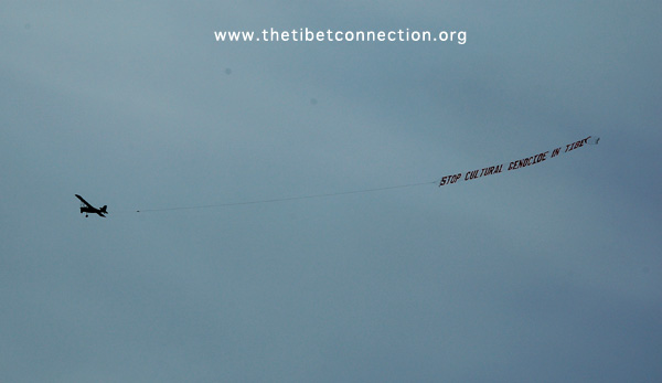 CULTURAL GENOCIDE IN TIBET banner circling around the Chinese Consulate. |