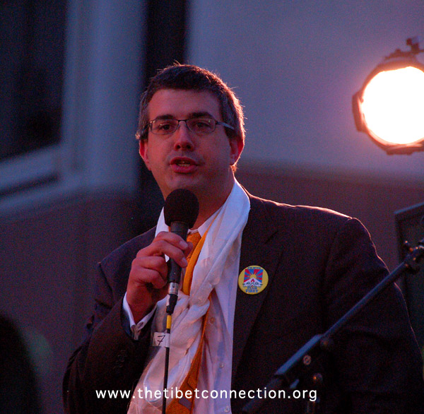 Francisco Supervisor Chris Daly, wearing a Free Tibet button, addresses