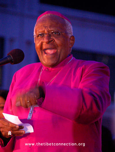 Desmond Tutu addresses the thousands of Tibet supporters in United Nations