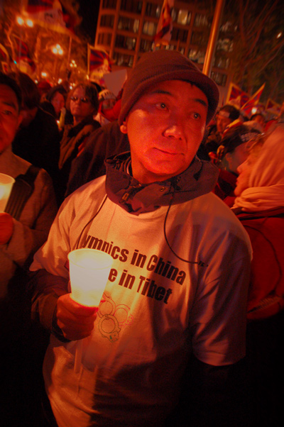 the speakers, The Tibetans held a candlelight vigil. Although