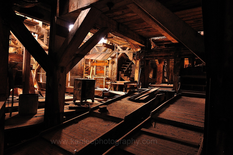 Mining for gold was not easy. In addition to the harsh climate of the town, the nearly daily killings, and more, the actual work was quite dangerous. Here, after the stamp mill has pounded the mined rocks, workers used mercury - without respirators or gloves, of course - to attract the fine gold particles. Although these jobs paid well, the life expectancy was not long. |
