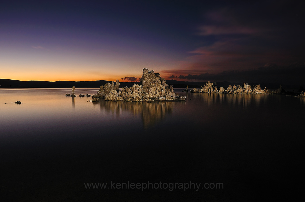 Title: Mono Lake Reflections This long exposure photograph brought out the beautiful colors of dusk even though it looked really dark. There's this very small window of time in which long exposures seem to bring out the warm colors of dusk even though our eyes cannot really see it any more. |