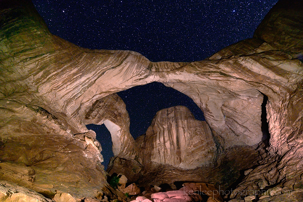 Double Arch, Arches National Park. The scene was illuminated by a Dorcy LED flashlight. The camera is facing more or less north.Title: Double Arch North (2471) Photo: Ken Lee Photography Info: Nikon D610, AF-S Nikkor 14-24mm f/2.8G ED lens at 14mm, 20 seconds, f/2.8, ISO 4000, 2014-06-25 11:43 am. Light painted with Dorcy LED flashlight. Photoshop CS4. Location: Arches National Park, Utah, USA ~~~ Double Arch (Arco Doble), Arches National Park. La escena estaba iluminada por una linterna Dorcy LED. La cámara se enfrenta a más o menos al norte. Título: Double Arch North Foto: Ken Lee Photography Info: Nikon D610, AF-S Nikkor 14-24mm f2.8G ED lente a 14 mm, 20 segundos, f/2.8, ISO 4000, 25/06/2014 11:43 am. Luz pintado con Dorcy linterna LED. Photoshop CS4. Lugar: Parque Nacional Arches, Utah, EE.UU. #archesnationalpark #milkyway #stars #night #nature #astrophotography #arches #nikon #d610 #lightpainting #14-24mm #longexposure #kenlee |