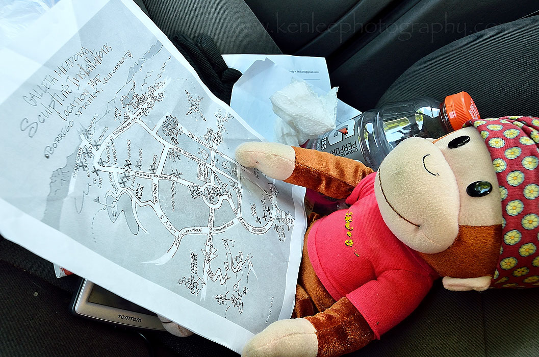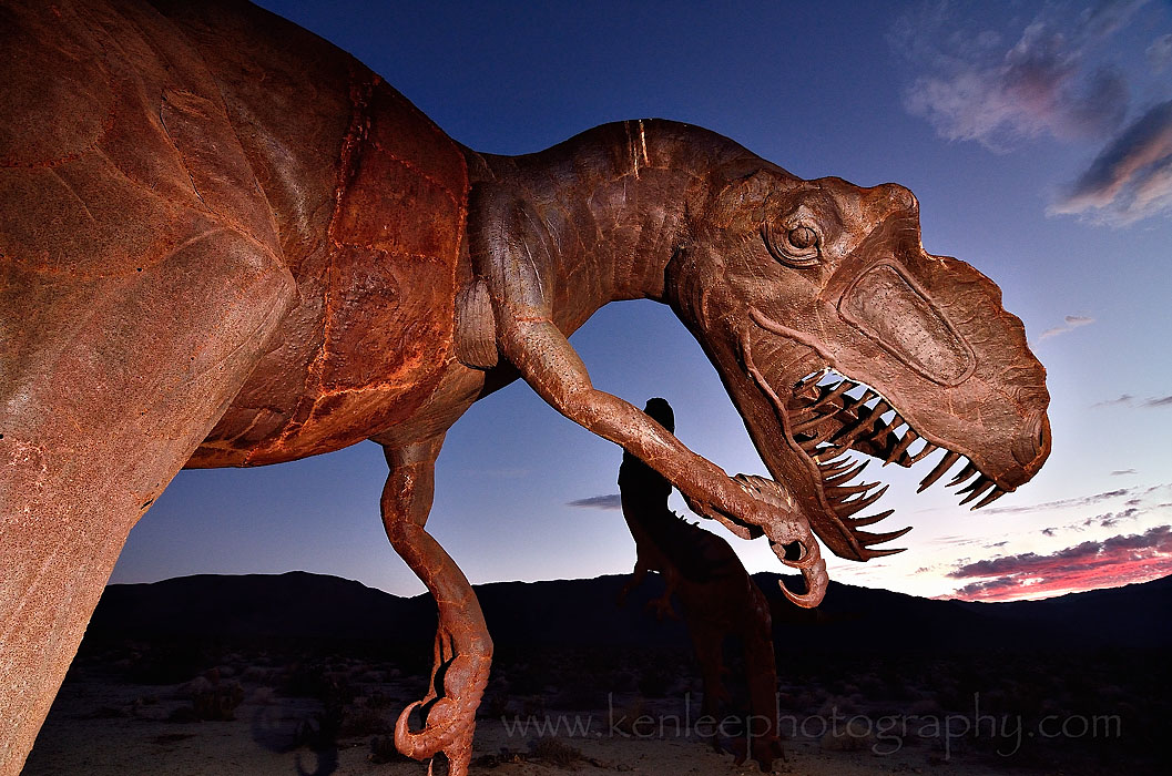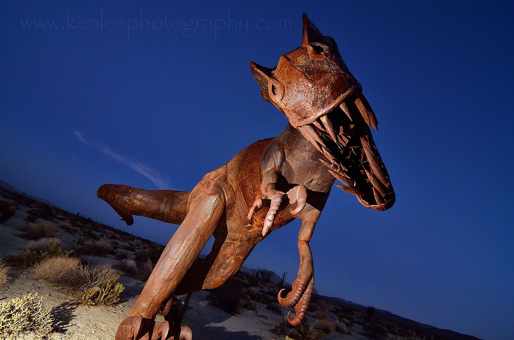 Friday 2 August 2013 - Borrego Springs, CA But I had another road trip coming, this one to Borrego Springs, and later, to hang out with friends at a barbecue in the south part of Orange County. I got to Borrego Springs, ate fish tacos at Jilberto's Taco Shop, one of the few restaurants that is open during the off-season, and drove straight to the metal raptor sculptures. ~~~ Title: Raptor Up In My Love (2843) |