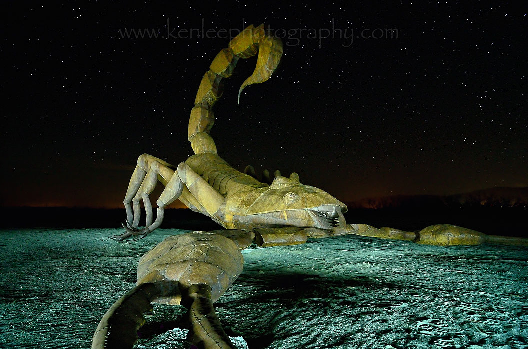 Title: The Sting of the Scorpion (3031)Photographer: Ken Lee Info: Nikon D7000, Tokina 11-16mm f/2.8 lens. 30 seconds at f/5 ISO 1600. "Light painted" with flashlight. 2 August 2013 11:29 pm. Location: Borrego Springs, California |