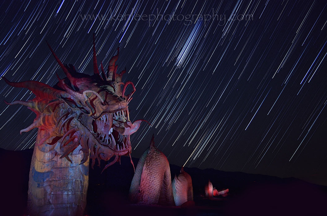 I was staying at Stanlunds Inn and Suites, a really good budget place in Borrego Springs, so I returned there some time around 3:30 am and fell asleep shortly thereafter. I had a bit of a drive the next day. ~~~ Title: Rattledragon Star Trails |