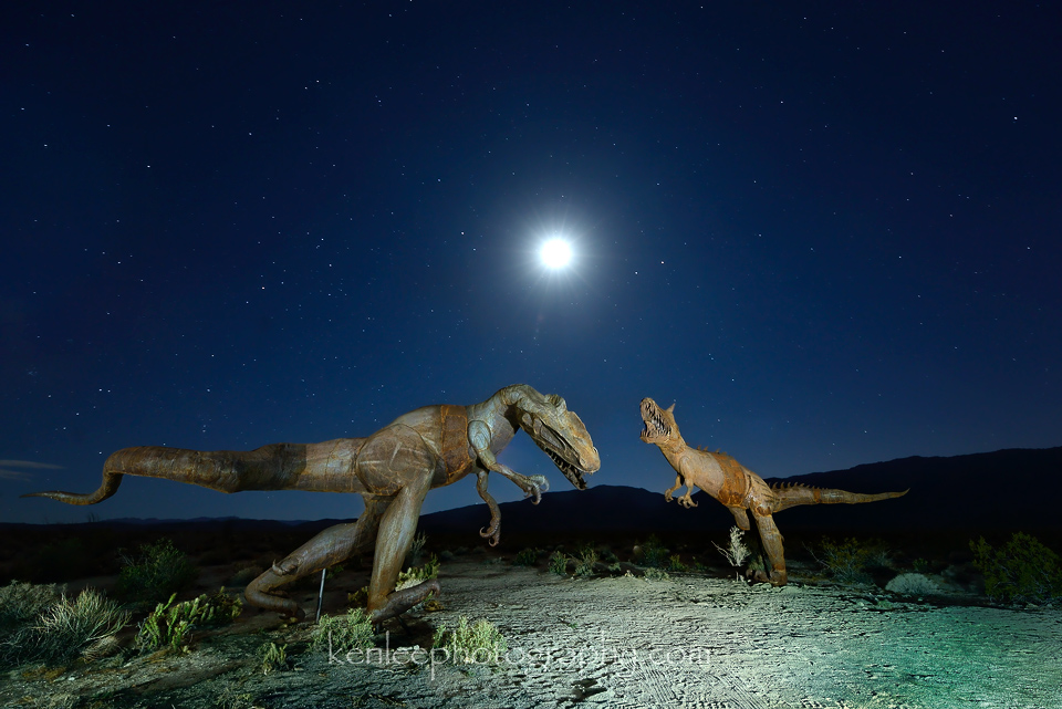 A Carnosaurus and Allosaurus face as the desert moon illuminates the conflict. Well, the moon and a trusty LED flashlight. These sculptures are created by Ricardo Breceda, and are among my favorite that he's created. This evening, we had a 65% moon that set well after midnight.Title: Faceoff Under the Desert Moon Photo: Ken Lee Photography Info: Nikon D610, AF-S Nikkor 14-24mm f/2.8G ED lens at 14mm, 20 seconds, f/2.8, ISO 4000, 2014-07-06 9:27 pm. Light painted with LED flashlight. Location: Borrego Springs, CA, USA Título: Cara a cara bajo la luna del desierto Foto: Ken Lee Photography Info: Nikon D610, AF-S Nikkor 14-24mm f/2.8G ED en 14 mm, de 20 segundos, f/2.8, ISO 4000, 06/07/2014 21:27. Luz pintada con la linterna LED. Ubicación: Borrego Springs, CA, EE.UU. #stars #borregosprings #ricardobreceda #dinosaur #sculpture #nikon #d610 #lightpainting #nightsky #photography #california #desert #moon |