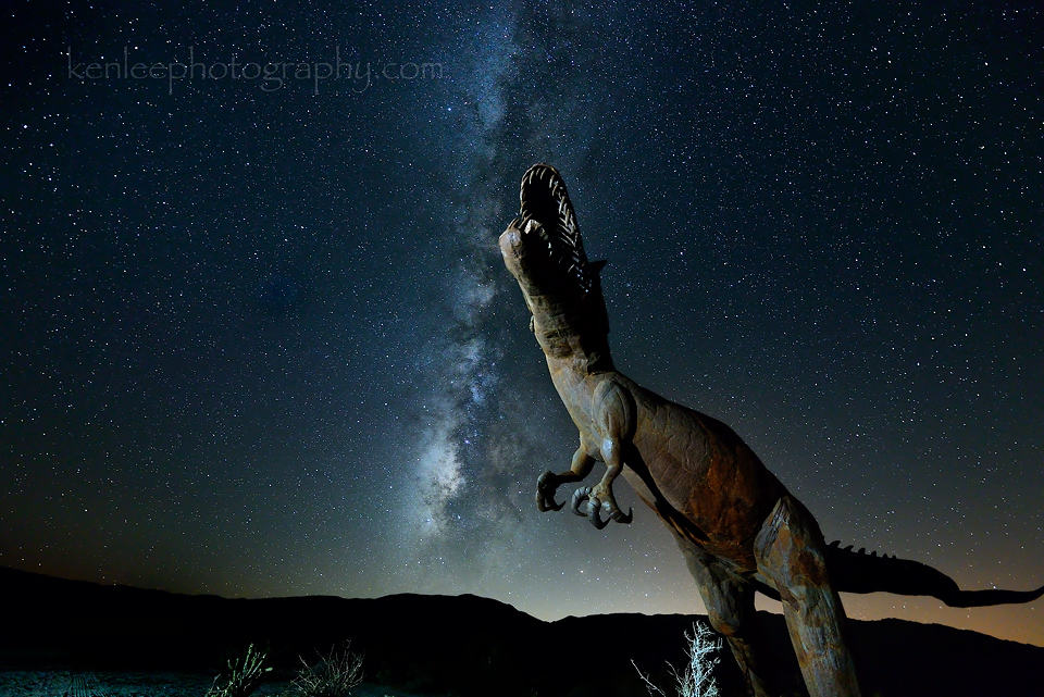 The stars tremble from the primordial bellow. This photo was taken during a Star Trails and Light Painting Workshop that I taught in Borrego Springs, and taught for a while about photographing the Milky Way as well. The dinosaur sculpture is created by Ricardo Breceda, one of about 129 sculptures in Galleta Meadows in Borrego Springs, and have become somewhat of a tourist attraction. And indeed, it's the primary draw for me when going to Borrego Springs, although Anza-Borrego State Park is pretty great as well. This is facing more or less south toward the Milky Way.Title: Trembling Stars Photo: Ken Lee Photography Info: Nikon D610, AF-S Nikkor 14-24mm f/2.8G ED lens at 14mm, 20 seconds, f/2.8, ISO 4000, 2014-07-07 1:49 am. Light painted with LED flashlight. Location: Borrego Springs, CA, USA ~~~~~~ Título: Trembling Stars Foto: Ken Lee Photography Info: Nikon D610, AF-S Nikkor 14-24mm f/2.8G ED en 14 mm, de 20 segundos, f/2.8, ISO 4000, 07/07/2014 01:49 am. Luz pintada con la linterna LED. Ubicación: Borrego Springs, CA, EE.UU. #stars #borregosprings #ricardobreceda #dinosaur #sculpture #nikon #d610 #lightpainting #nightsky #photography #california #desert #moon #milkyway |