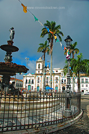 to fly back home.~~ 8 July Wednesday - After enjoying a fruit breakfast at Open House Barra, Lisa and I took a bus to the Pelourinho. Pelourinho means "whipping post", and this is where the slaves were tortured and sold. And this is also Salvador's historic center, declared a World Heritage Site by UNESCO in 1985. Photo: The Terreiro de Jesus, with the Igreja da Ordem Terceira da São Domingus in the distance, in the historic center of Salvador. |