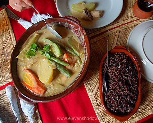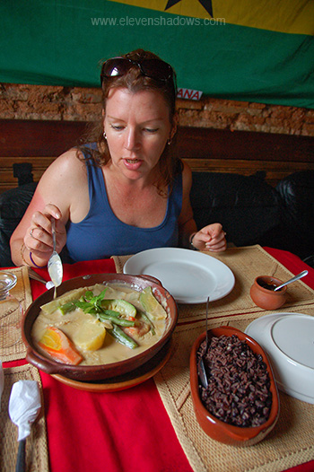 fish and vegetables in peanut stew, a West African specialty, and both were