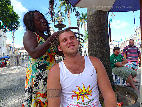 hair braided Salvador style. |