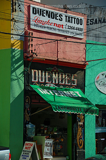 hair-braiding place right out on the street.I listened to some candomblé and samba de roda music at Randy's Cana Brava shop. He has a good collection there, and although he wasn't there, his wife was extremely helpful. Samba de roda is essentially the basis for samba in all of Brazil, eventually brought to Rio de Janeiro by black slaves who had migrated from here in Bahia. The Bahian samba de roda became a Heritage of Humanity of UNESCO in 2005. I returned to the Bahia-style restaurant known for its beans, Alaide do Feijão. Last time was too filling, so I ordered it without the meat and sausage. It was still too filling. I believe the lady may have given me extra. |