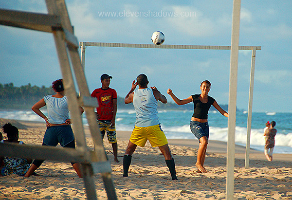 ate, drank, and watched futebol on the beach.After some time, I had to leave to make certain I caught the last bus back to Salvador. Unfortunately, that was also maybe a mile away. "How many minutes to the bus?" I asked halfway through the walk. "Five minutes. Three if you run." I caught the bus as the sun was setting and snoozed half the way back. I arrived between 7:30 and 8, drinking copious amounts of water. |
