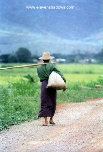 market in Nyaungshwe. Some walk as much as 20 miles with 60 pounds on their