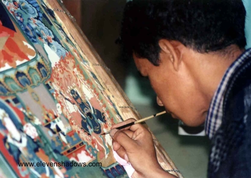 Phoonchin Tsering painting a beautiful thangka