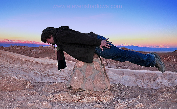 At Valle de la Luna, a couple of guys kept assuming odd poses while yelling "Facebook!". Here, one of them is a human see-saw. Or he's...never mind. |