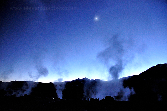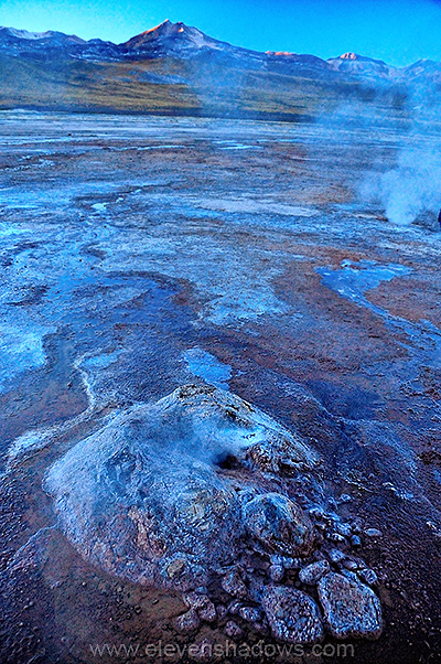 The cheap alarm clock worked. It was 3am and time to wake up to go to the El Tatio Geysers, which I had been excited about seeing. Why would anyone wake up so early to see the geysers? Because the best time to see them is at sunrise when the geysers give off steam that condenses in the bitterly cold morning air. The steam plumes disappear as the air warms up. And at 4200m (about 13,800 ft), the air gets darn cold. -8ºC (17 F), to be exact. |