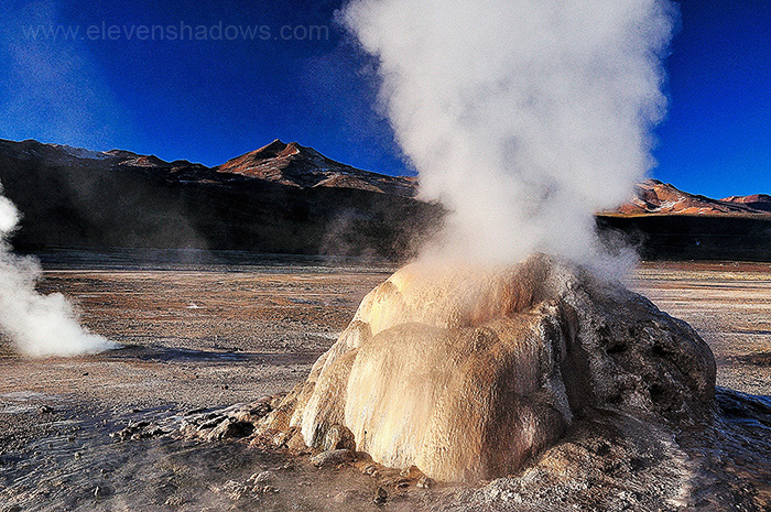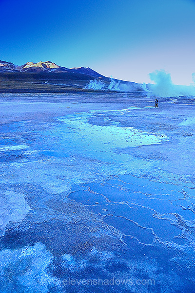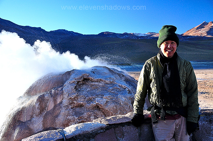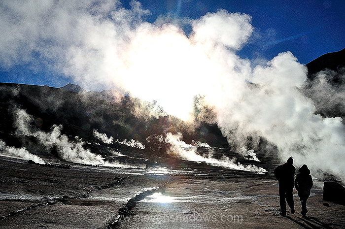 Sunrise at 4200m is beautiful, a clearer, bolder sun. But the sunrise also means that the high mountain air will soon warm, and the steam from the geysers will subside. |