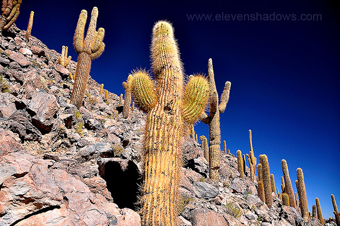 The tour wasn't quite over. As we descended in elevation, returning from El Tatio, we stopped at the amazing ancient cactus forest of Quebrada de Guatin, not far from San Pedro de Atacama in the valley below. |