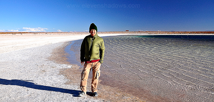 28 junio, martes: I went out to the northern tip of the Atacama salt pan, or Salar de Atacama, to see the Piedra lagoon. Unfortunately, the day was windy, and the waters not still and reflective. |