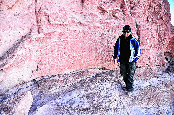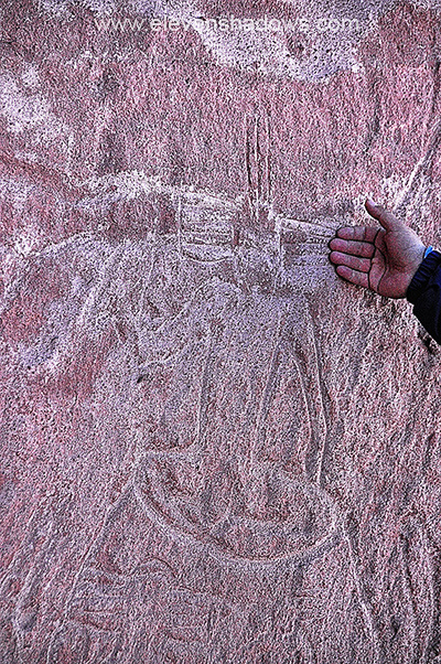 David describes one of the stranger Atacameño petroglyphs. Now, clearly to me, this is an extraterrestrial, something Erich von Däniken might froth at the mouth over, but you might think differently. But you'd be wrong. :D |