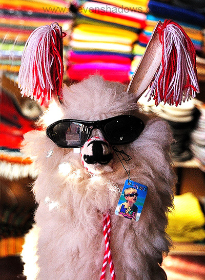 I also changed money on Calle Toconao. They had a llama with sunglasses, "una llama moderna," as the woman joked. And I did mention before that you'd get one more photo of a llama, didn't I? |