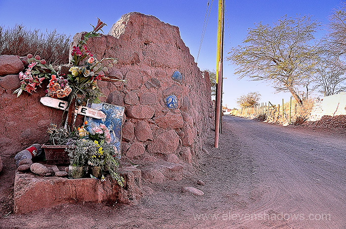 There are many roadside shrines in the Atacama Desert, signifying that someone has died here. Disconcertingly, many of them on the highways exist on straight lengths of the highway. |
