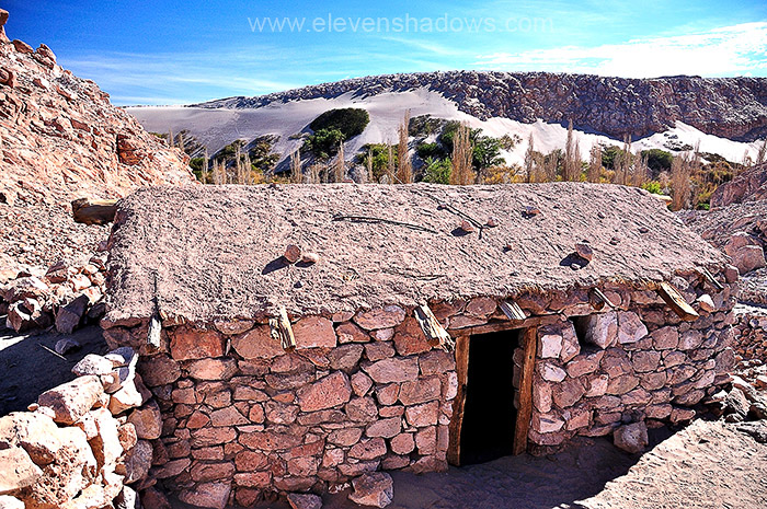 A recreated house that was typical of Pre-Columbian homes built near the village of Toconao, a peaceful oasis of fruit trees, herbs, flowers, and, believe it or not, even vineyards, all set in a large rocky canyon. |