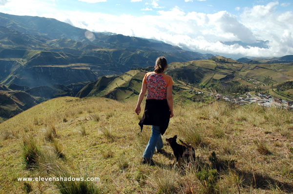 Katrien and Nina the 3-month old puppy rest on the top of Cerro Nahuira, a short hike from Hostal Llullu Llama in Isinlivi Katrien is originally from Holland, and runs the hostal for Jean Brown, who owns Safari Tours. |