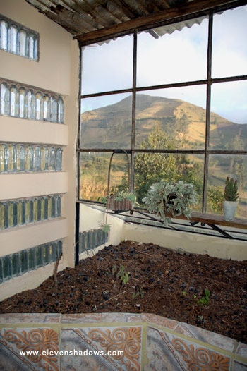 The greenhouse garden at Hostal Llullu Llama, where they also have a composting toilet that uses no water, providing non-smelly compost for the garden. |