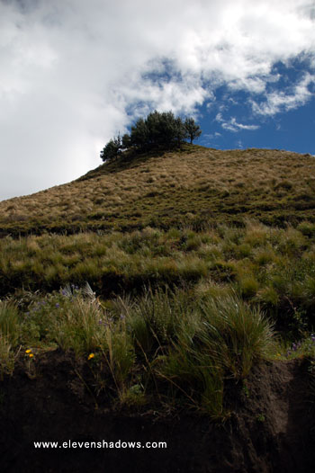 On 14 July in the morning, Katrien drove me up to what the locals call "las antenas" (the antennas, but you probably knew that, didn't you?), dropping me off at Cerro Guingopana Pass. Cerro Guingopana Pass is at 4000m (that's metric for "really absurdly high"), and is the páramo, a grassy, windswept area high up in the Andes. I saw the "puma head" rock, and then started my descent, admiring the beautiful views along the way. |