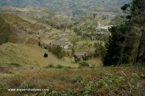 This is continuing the descent from el páramo, with the tiny village of Isinlivi in the distance. Much like the other hike, the paths are always well-trodden or obvious paths, so I simply improvised, occasionally cutting through farmer's fields and connecting with other footpaths, occasionally stopping to talk to locals. |
