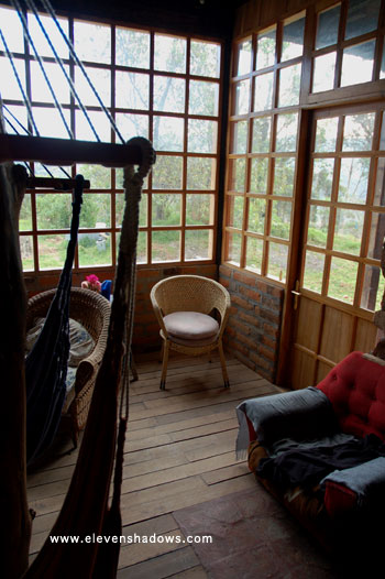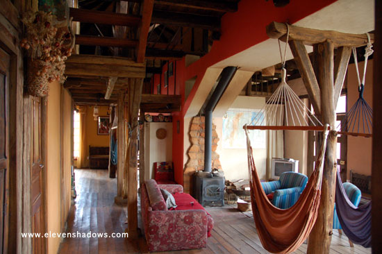 This is the very comfortable "hang-out" room in Hostal Llullu Llama, with hammocks hung all over the room. I read much of Confessions of an Economic Hit Man by John Perkins in this room (when I wasn't in the hammock outside). We burned Eucalyptus wood in the fireplace. |