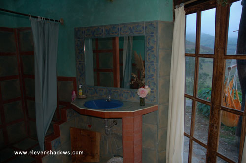 The ecologically friendly shower at Hostal Llullu Llama, which recycles the water to a greenhouse garden. |